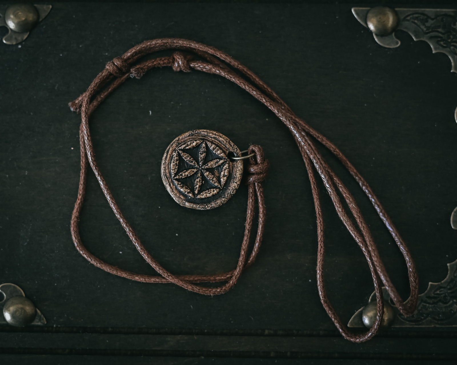 Materiál: Odolná, vysokotepelne vypálená keramika. Povrchová úprava zvýrazňuje detaily razenia a dodáva prívesku „starobylý“ nádych.