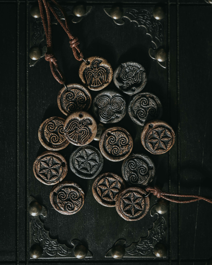 Naše keramické prívesky sú výsledkom poctivej ručnej práce. Žiadna pásová výroba – každý kus je originál s prirodzenou textúrou pálenej hliny a patiny, ktorá mu dodáva autentický, historický vzhľad.