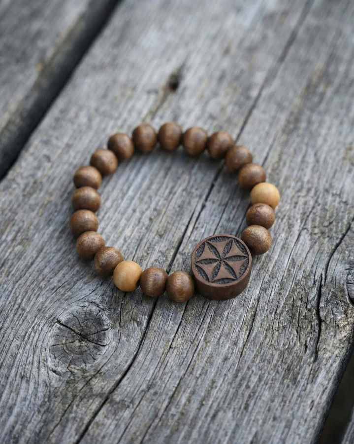 Náramok dopĺňajú korálky z tvrdého bukového dreva, ktoré sú ručne maľované, čím každý kus získava punc originality. Vďaka pružnej gumičke sa náramok prispôsobí každej ruke – či už hľadáte talizman pre seba, alebo darček s hlbším významom pre svojich blízkych.