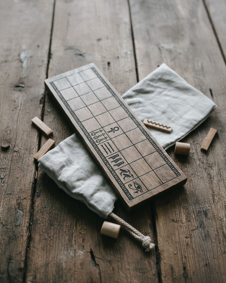 - Hádzacie paličky: Tradičná náhrada za kocky, presne tak, ako sa Senet hrával v starovekom Egypte.